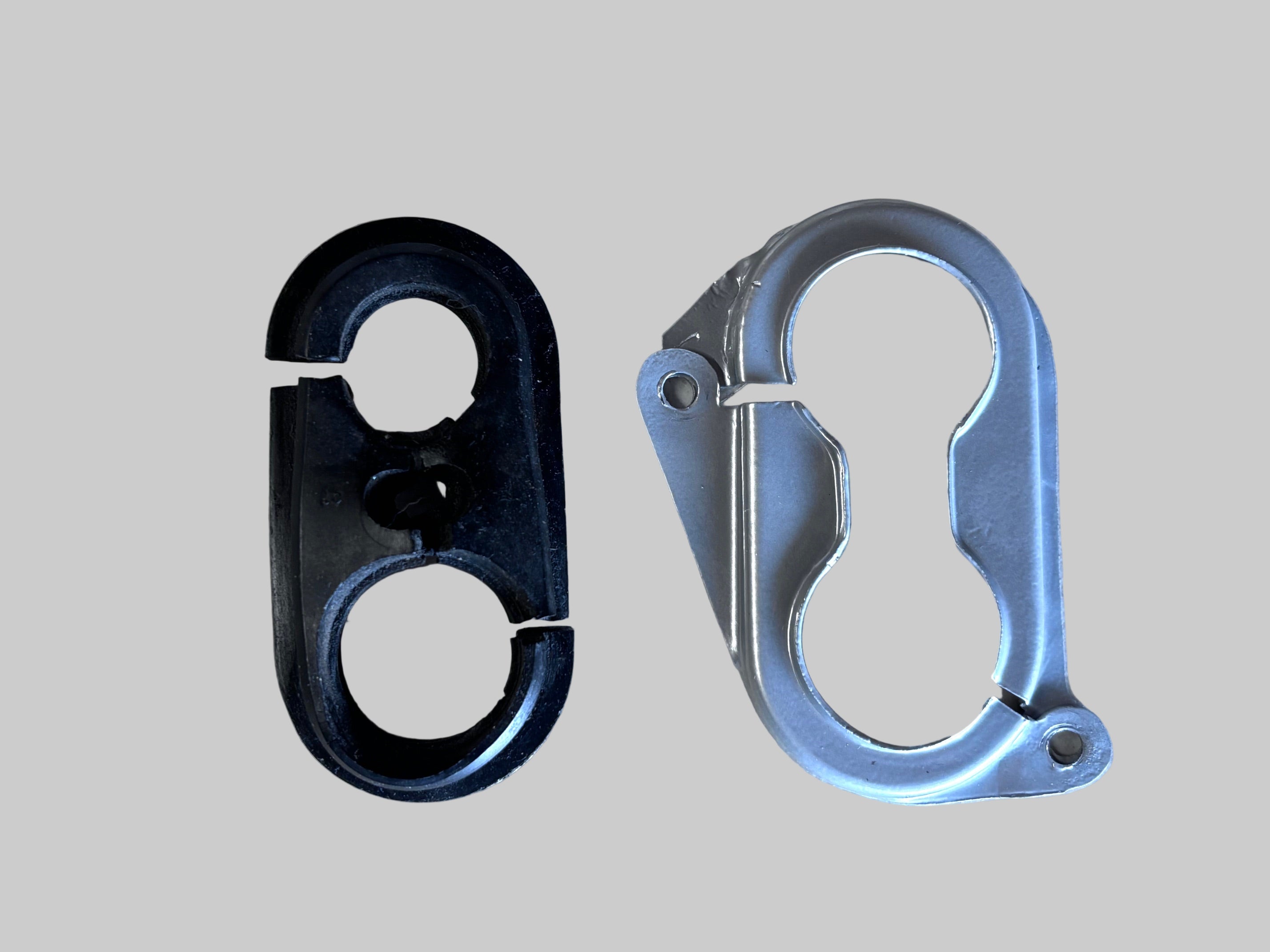 This is an original bracket & grommet in excellent condition. Bracket has been refurbished and powder coated in silver. Grommet in excellent condition.